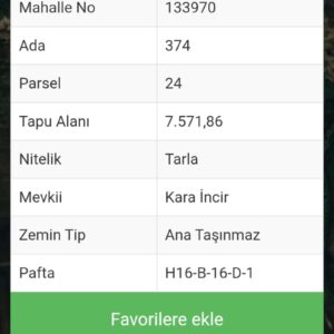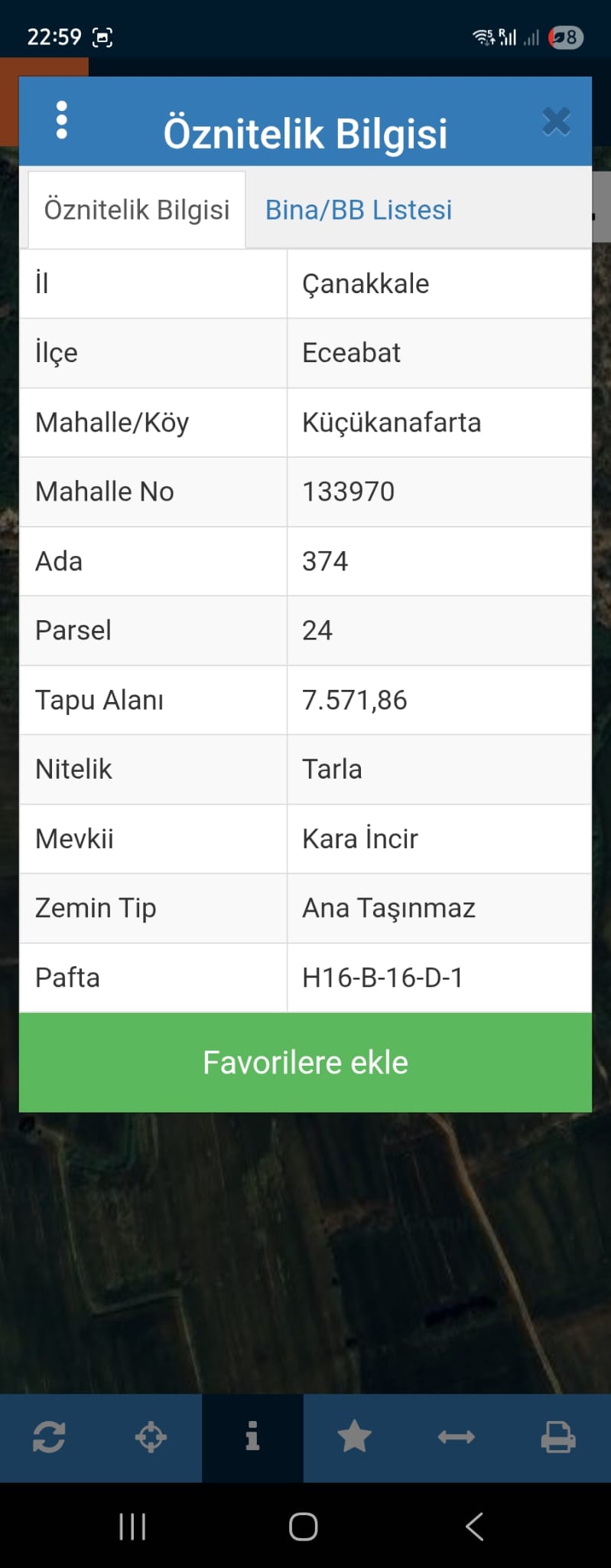 Çanakkale, Eceabat ilçesi, Küçükanafarta Köyünde 374 ada, 24 parsel, 7600 m² tapulu, 11000 m² ecrimisil (devletten yıllık kiralık), toplam 18600 m² zeytinlik.
